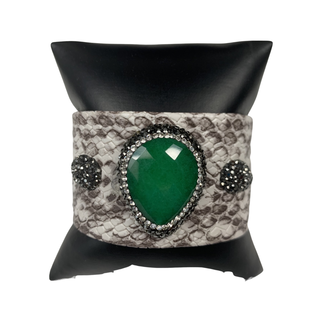 Red Stone Gray & White Snakeskin Druzy Cuff Bracelet