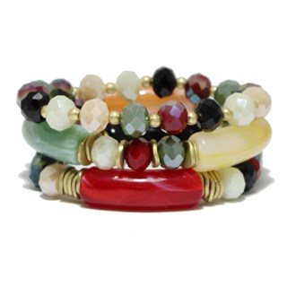 Celluloid Acetate Tube Multi Layered Beaded Stretch Bracelet